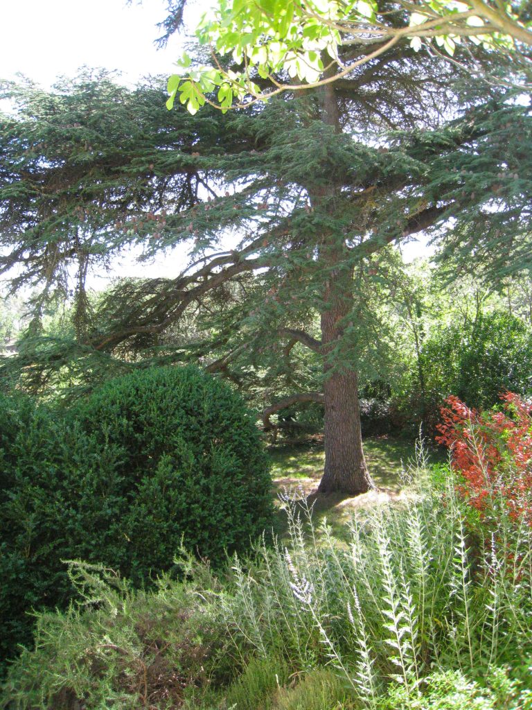 Quelques marches plus haut, après avoir traversé un couloir de buis, un majestueux cèdre du Liban développe sa frondaison comme une canopée protectrice depuis presque deux siècles.